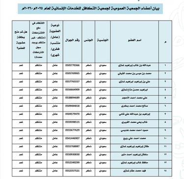 أسماء موظفي الجمعية